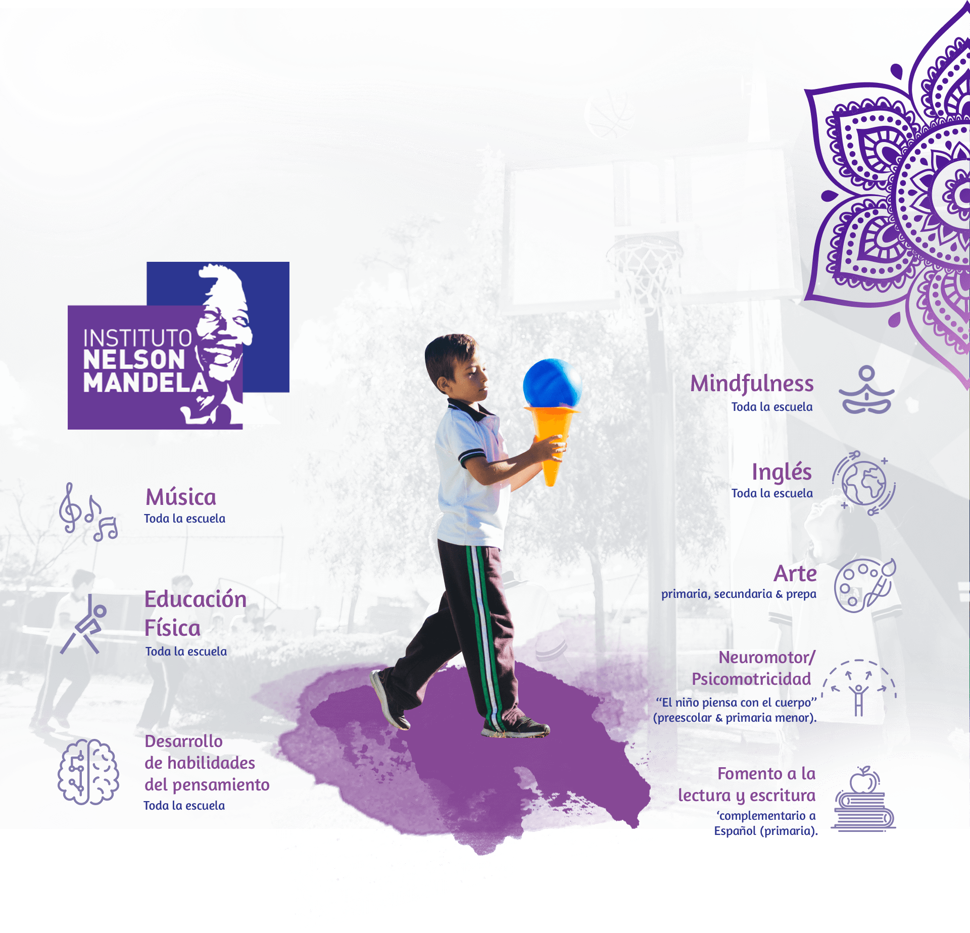 educación física, taller de basquetbol, música, coro, ballet folclórico, educación socioemocional y fomento a la lectura.
